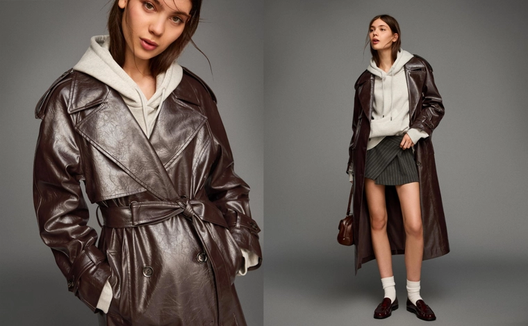 Oversize leather effect trench coat